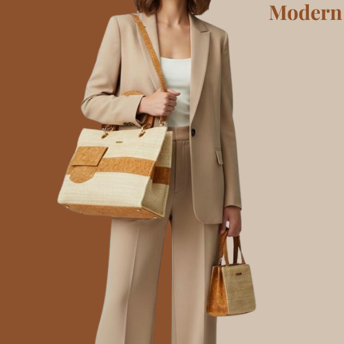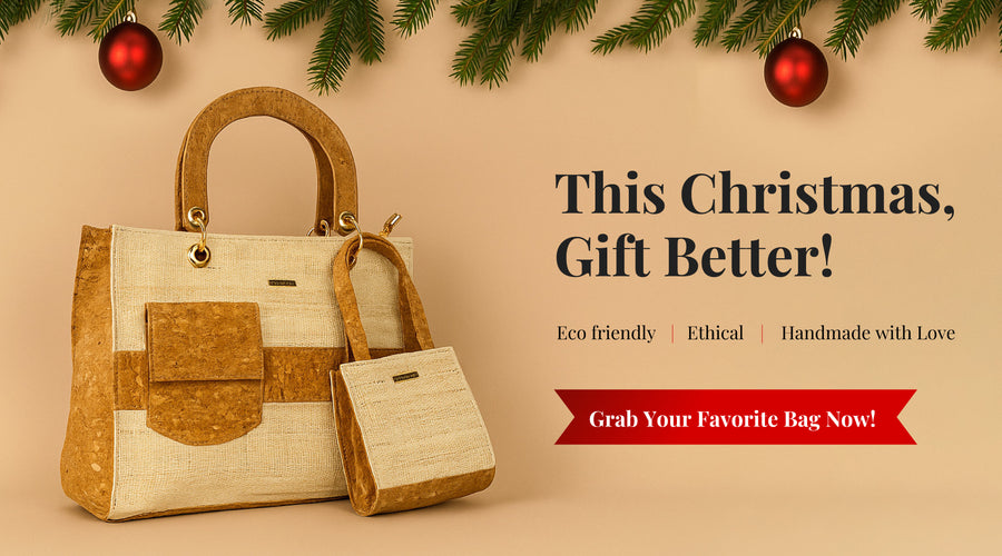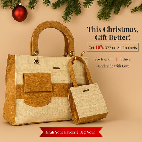 Carry style with purpose with the Eco friendly, Vegan Sustainable Tote Bag, crafted from handwoven banana fiber and natural cork fabric. Designed for everyday versatility, this eco tote perfectly balances functionality, durability, and conscious fashion. Whether...