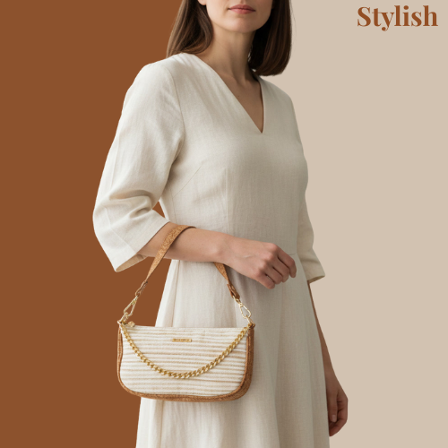 Make a statement in sustainable luxury with this women clutch hand bag. handcrafted from a unique blend of cork and banana fiber. Combining minimalist design with artisan craftsmanship, it is a lightweight, durable, and completely...