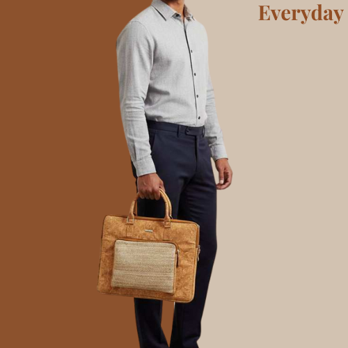 Luxury unisex laptop bag , Business bag, work bag made from sustainable banana fiber and cork. vegan laptop bag, handcrafted by rural women in India. Features durable hardware, zip closure, and double non adjustable straps....
