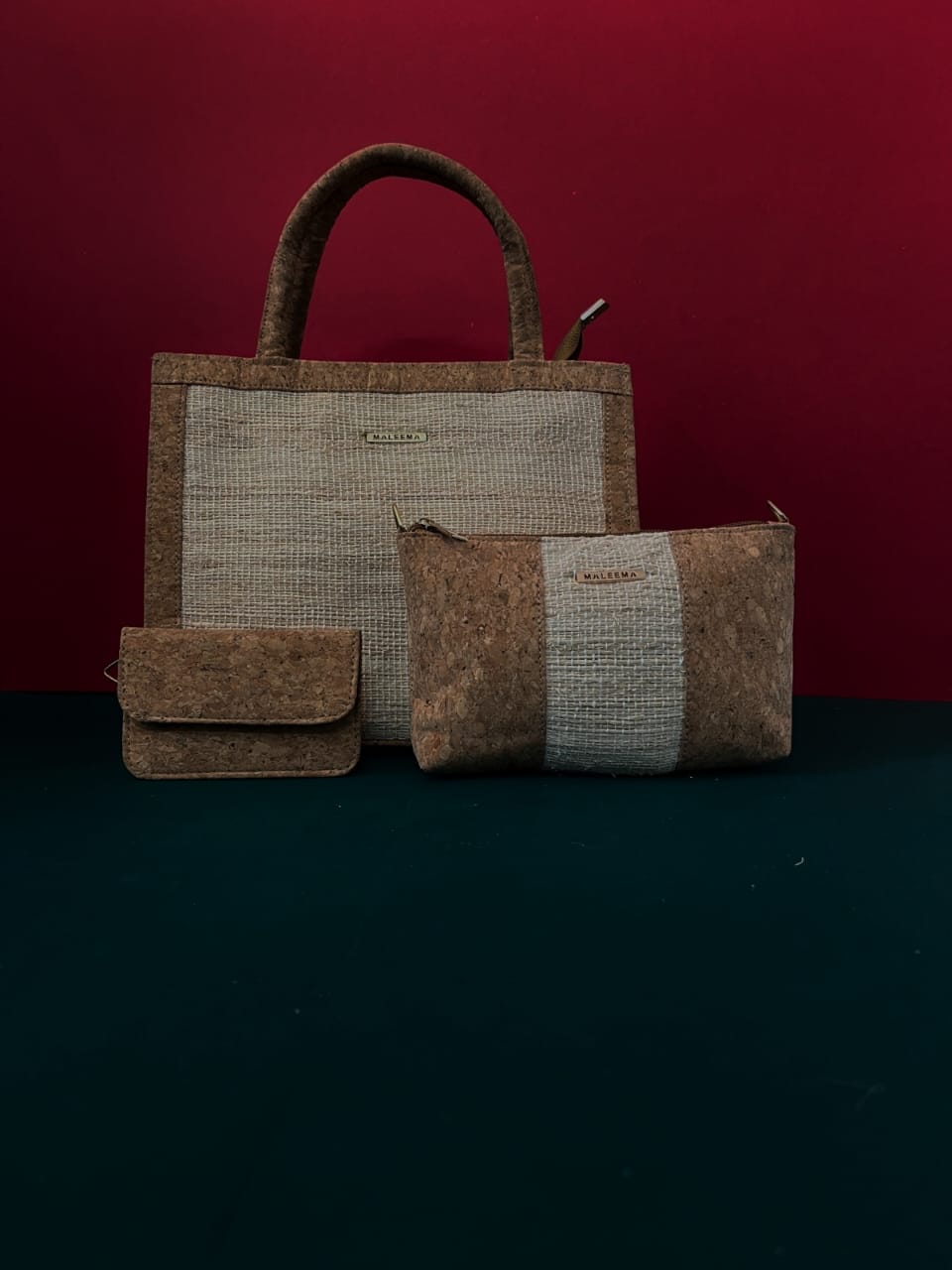 Carry style with purpose with the MaLeeMa Sustainable Tote Bag, crafted from handwoven banana fiber and natural cork fabric. Designed for everyday versatility, this eco tote perfectly balances functionality, durability, and conscious fashion. Whether for work,...