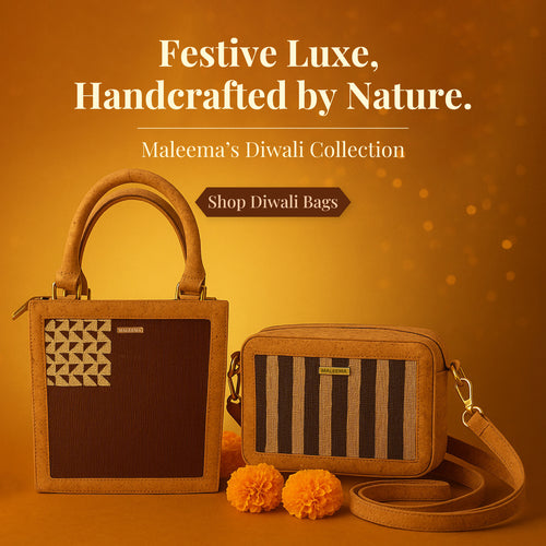 Redefine festive chic with the Luxe Terra Box Sling 🌿✨ This structured crossbody sling is handcrafted from cork and banana fibre, making it 100% vegan, lightweight, and plastic-free. Its unique box silhouette brings a modern...