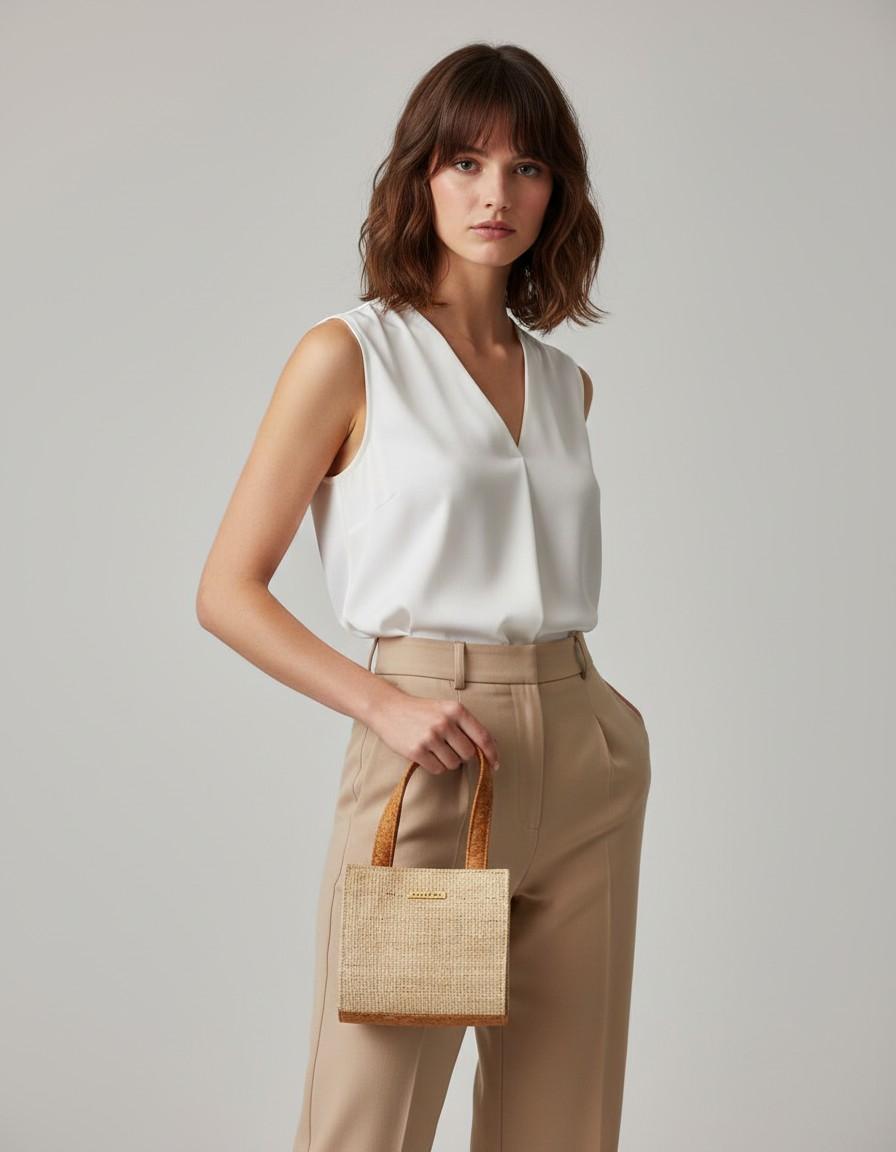 Nano Tote a compact yet powerful expression of eco luxury, crafted from handwoven banana fiber and natural cork fabric. Designed for those who believe in minimalism with meaning, this mini tote is perfect for your everyday on the go essentials from your phone and wallet to keys, cards, and more.