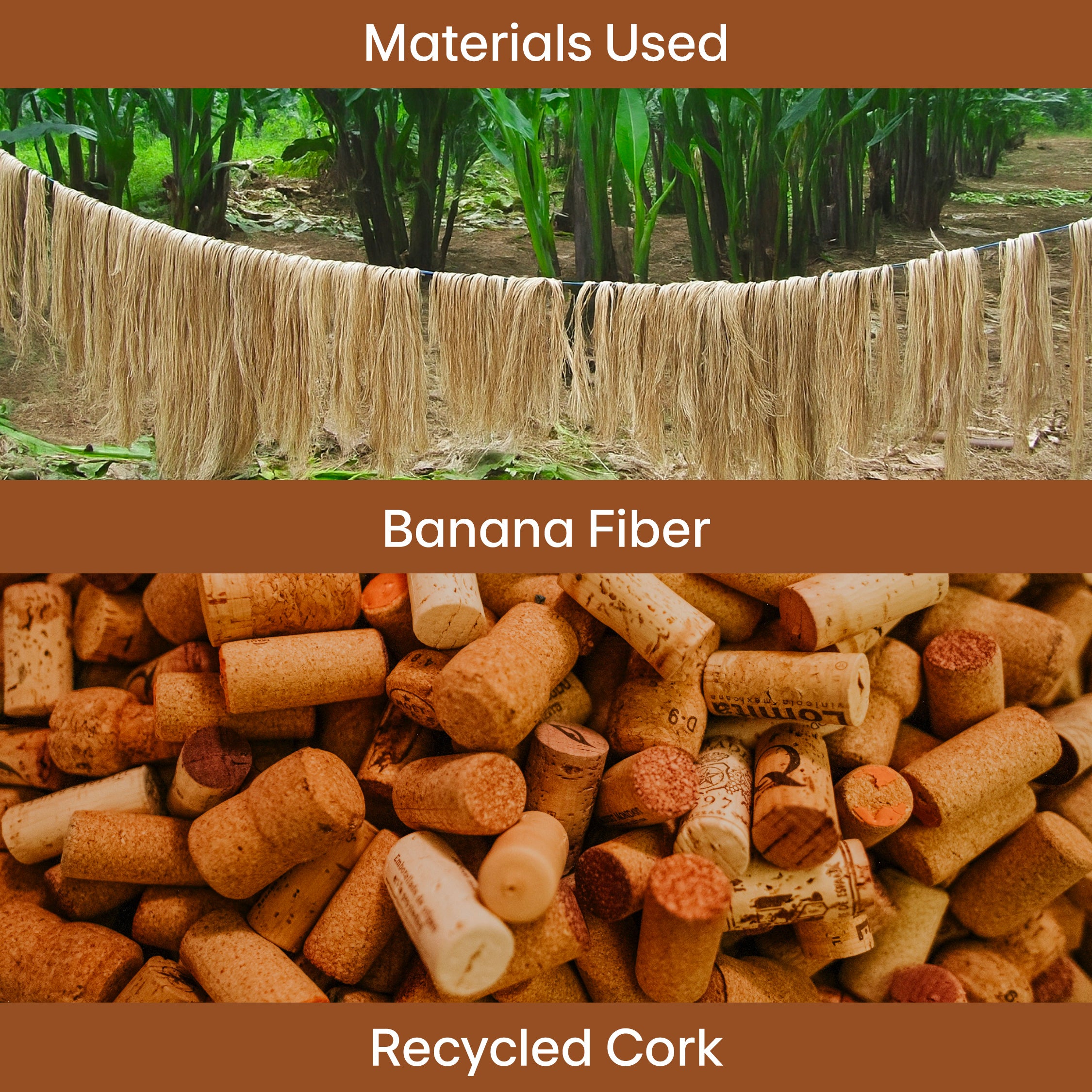 The MaLeeMa Banana Bag Pack is a sustainable backpack designed for modern, eco-conscious living. Handcrafted from banana fiber and natural cork, this lightweight and durable bag combines practicality with timeless, eco-luxury design.