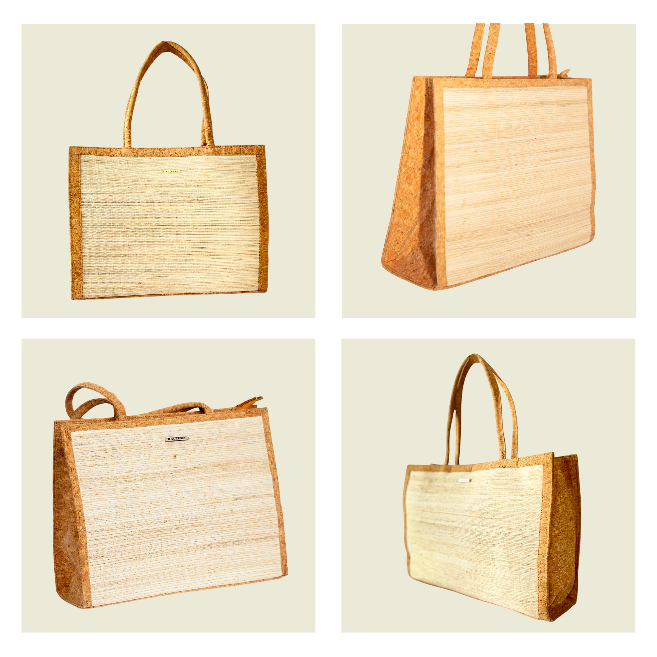 Carry style with purpose with the MaLeeMa Sustainable Tote Bag, crafted from handwoven banana fiber and natural cork fabric. Designed for everyday versatility, this eco tote perfectly balances functionality, durability, and conscious fashion.