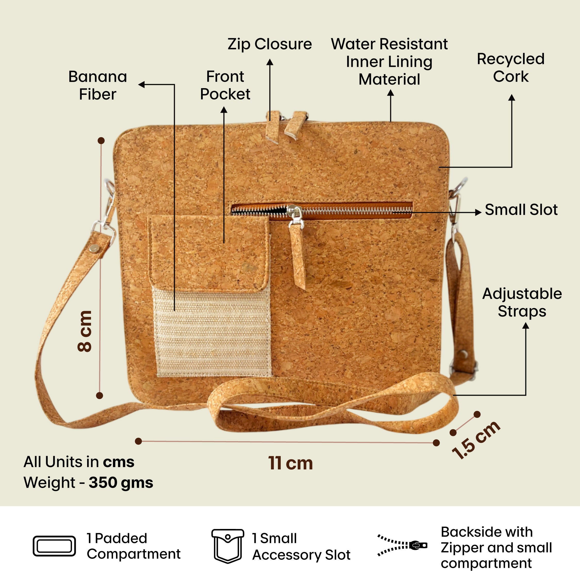 • Color: Natural beige with cork accents