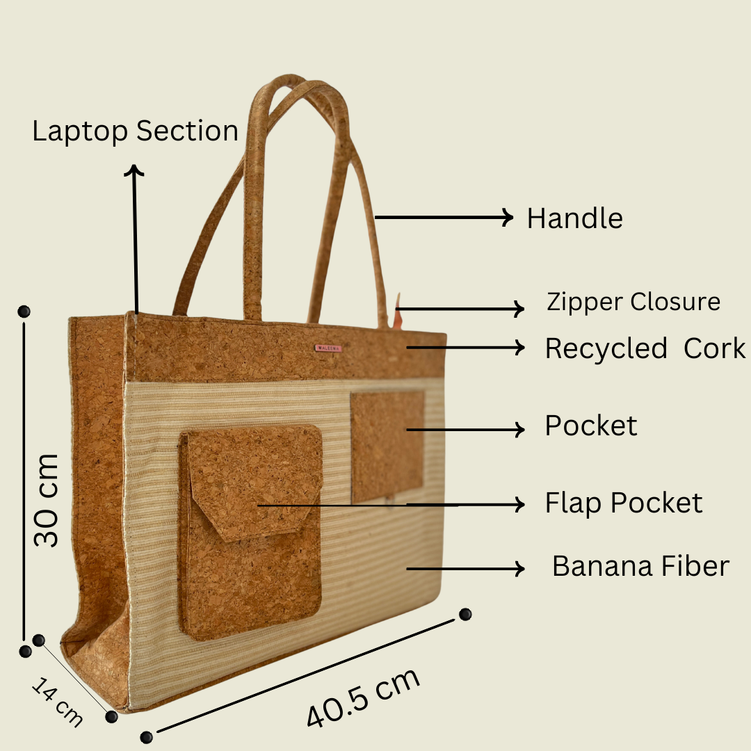 Meet the Luxury sustainable tote bag India that turns farm waste into everyday style. The MaLeeMa Banana Fiber Tote Bag is crafted from the stem of the banana plant and natural cork material.