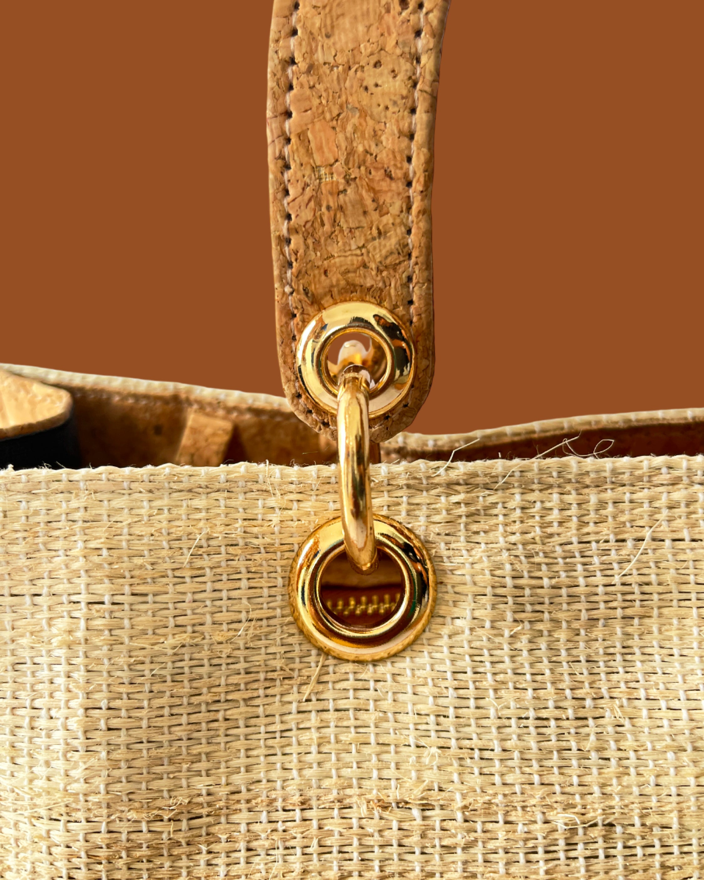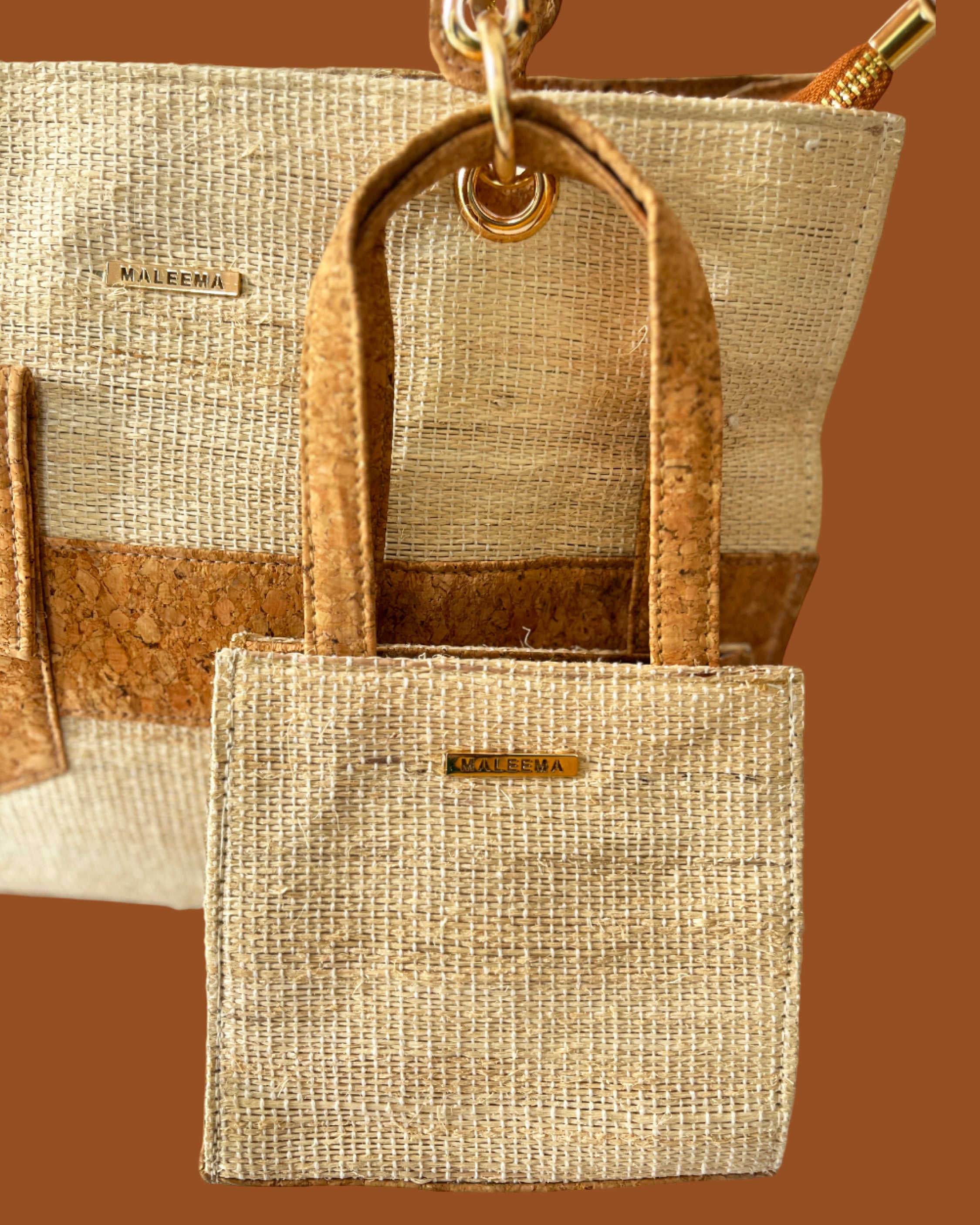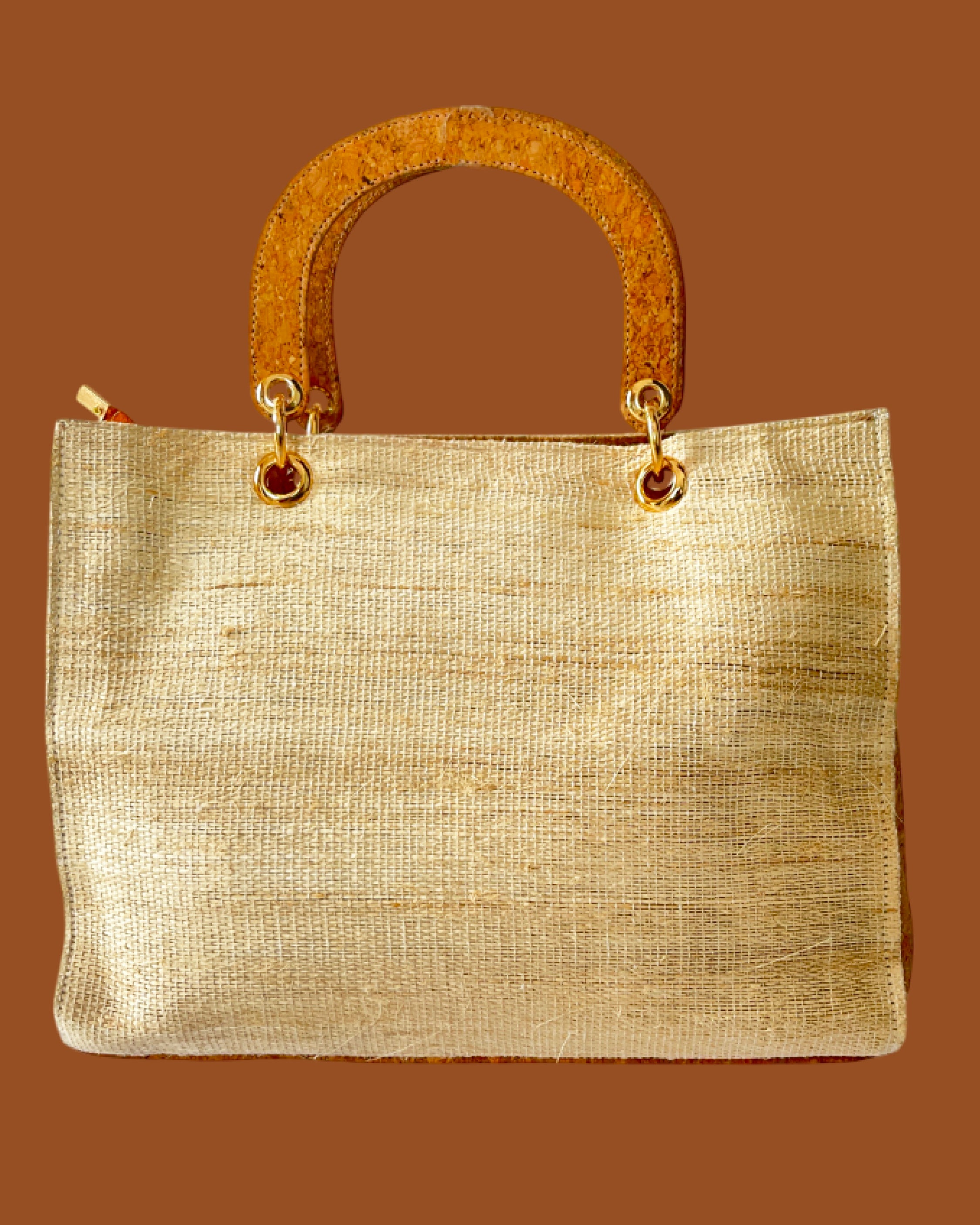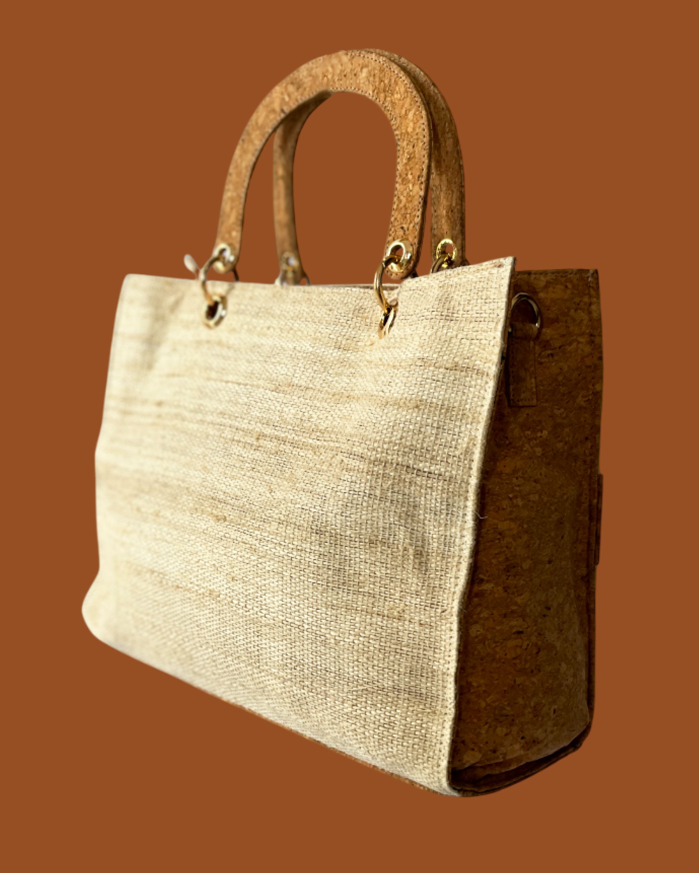 Twin Tote Bag, a premium handmade tote bag for women crafted from eco friendly banana fiber and natural cork leather alternative. Designed as a multi purpose tote, it doubles as a work bag, travel tote, office bag, iPad bag, and shopping bag  making it your perfect everyday companion.